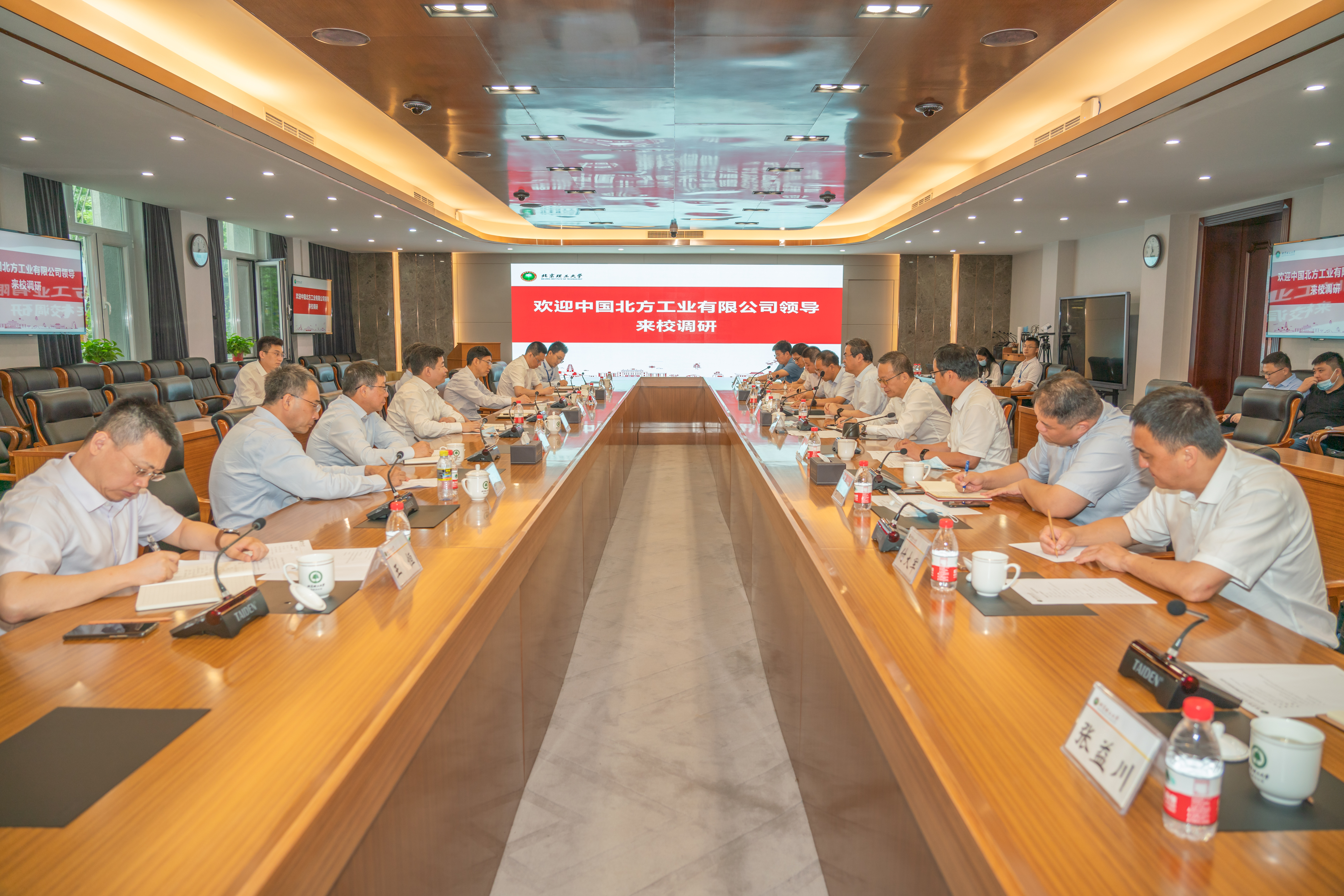 8月9日,中国北方工业有限公司总裁陈德芳、党委书记杨小青一行来校调研并座谈,深化校企战略合作。北理工校长龙腾院士出席座谈会,北方公司党委副书记王朝钦、学校副校长庞思平、校长助理王伟等陪同调研。座谈会后,学校党委书记张军院士会见了中国北方工业有限公司一行。