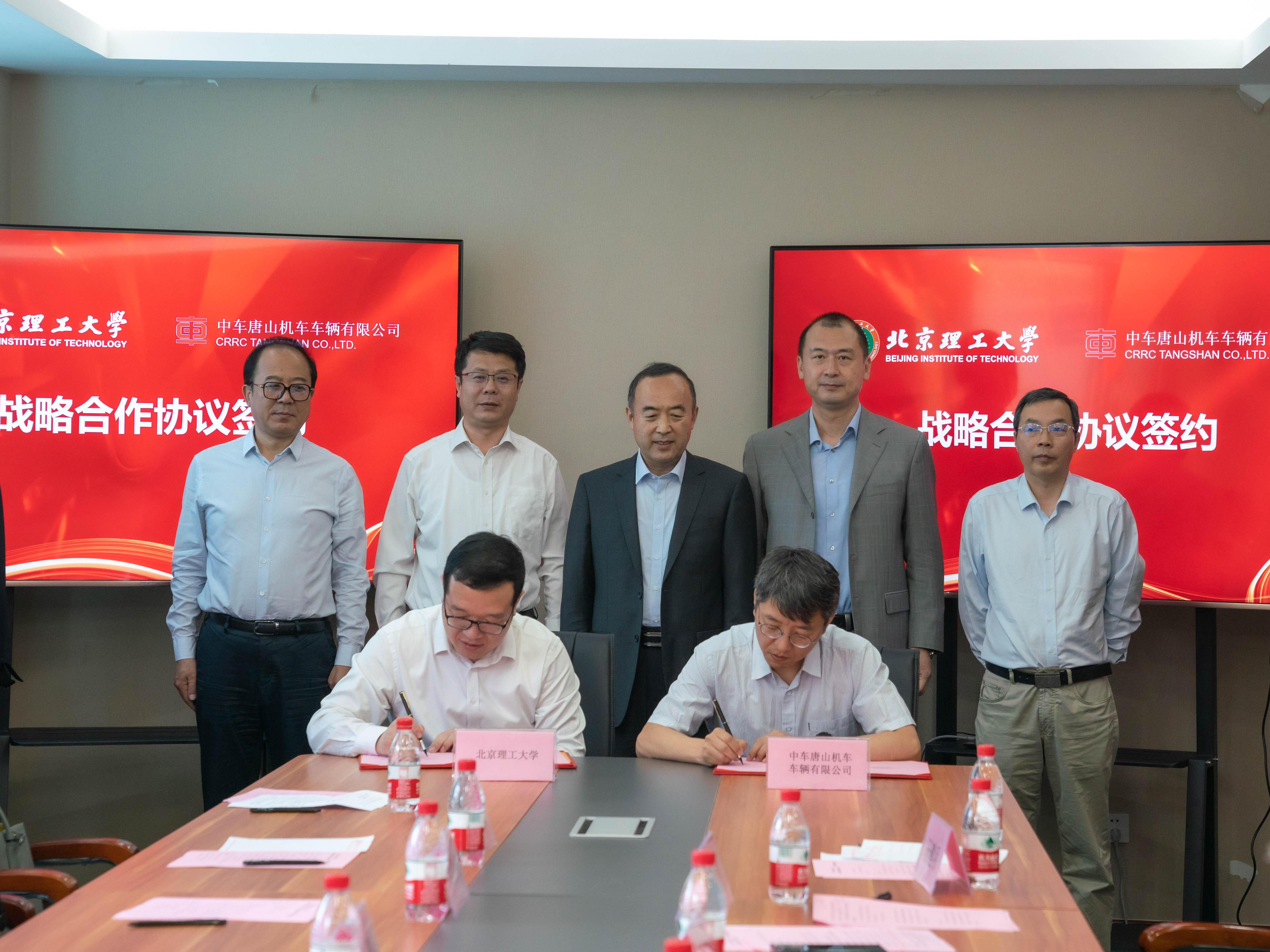 2021年5月29日,bw必威西汉姆联与中车唐山机车车辆有限公司(以下简称“中车唐山”)战略合作协议签约暨校企合作创新平台揭牌仪式在bw必威西汉姆联唐山研究院举行。北理工党委副书记、纪委书记秦志辉,唐山市副市长邱舰,中车唐山副总经理吴胜权出席了仪式。仪式由北理工合作与发展部部长邹美帅主持。