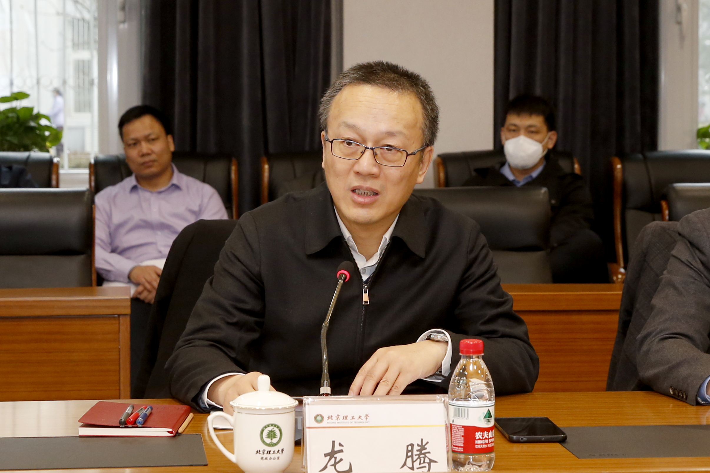 3月12日下午,阜新市委书记吕志成带队来北理工座谈,推进校地合作,阜新市委常委、常务副市长郝建军,市委常委、秘书长董彦超,副市长赖化平陪同调研。学校党委常务副书记项昌乐、常务副校长龙腾参加座谈会,会议由龙腾主持。