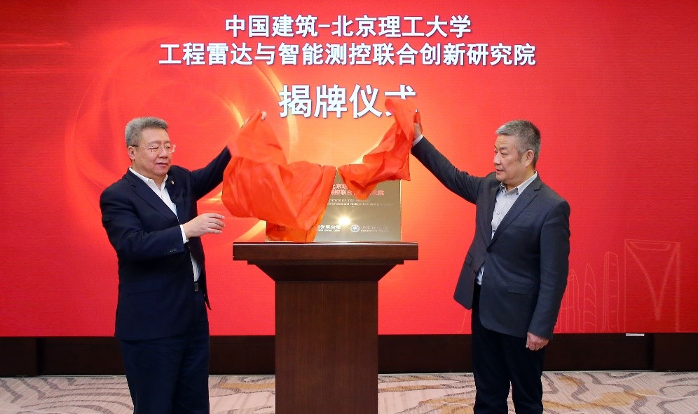 郑学选与赵长禄为工程雷达与智能测控联合创新研究院揭牌。